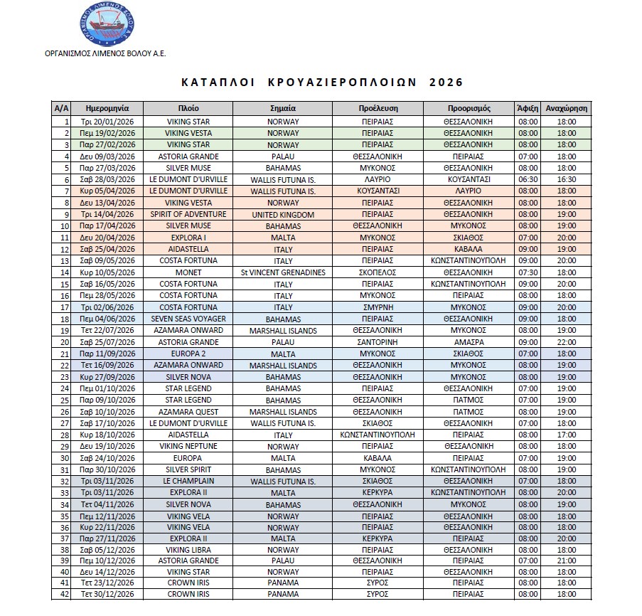 Επισυνάπτεται ο νέος πίνακας κρουαζιεροπλοίων