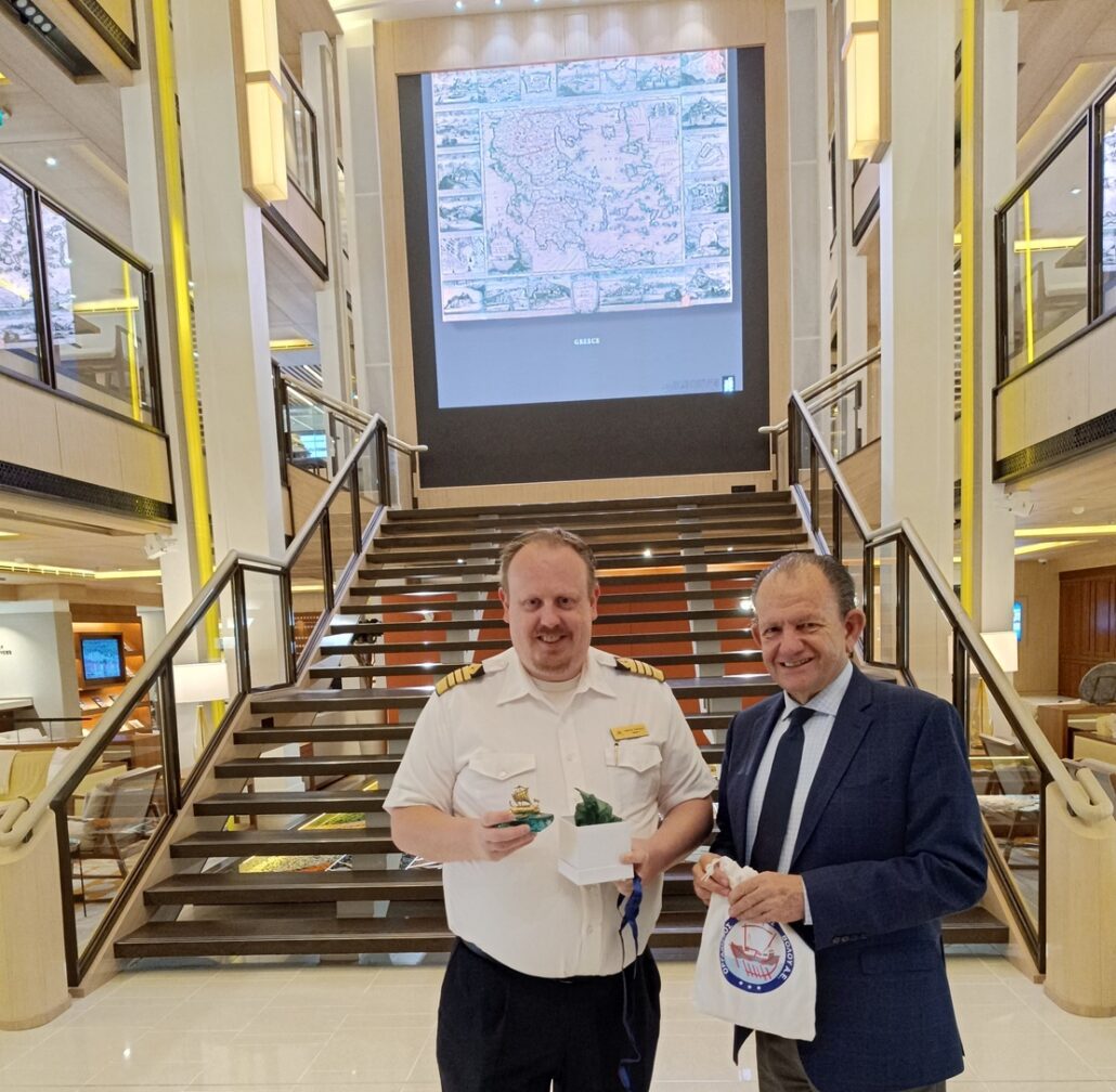 Ο κ. Αναγνώστου, καλωσόρισε τον Σουηδό πλοίαρχο του κρουαζιεροπλοίου κ. Johan Henrik κι αντάλλαξαν αναμνηστικά δώρα.